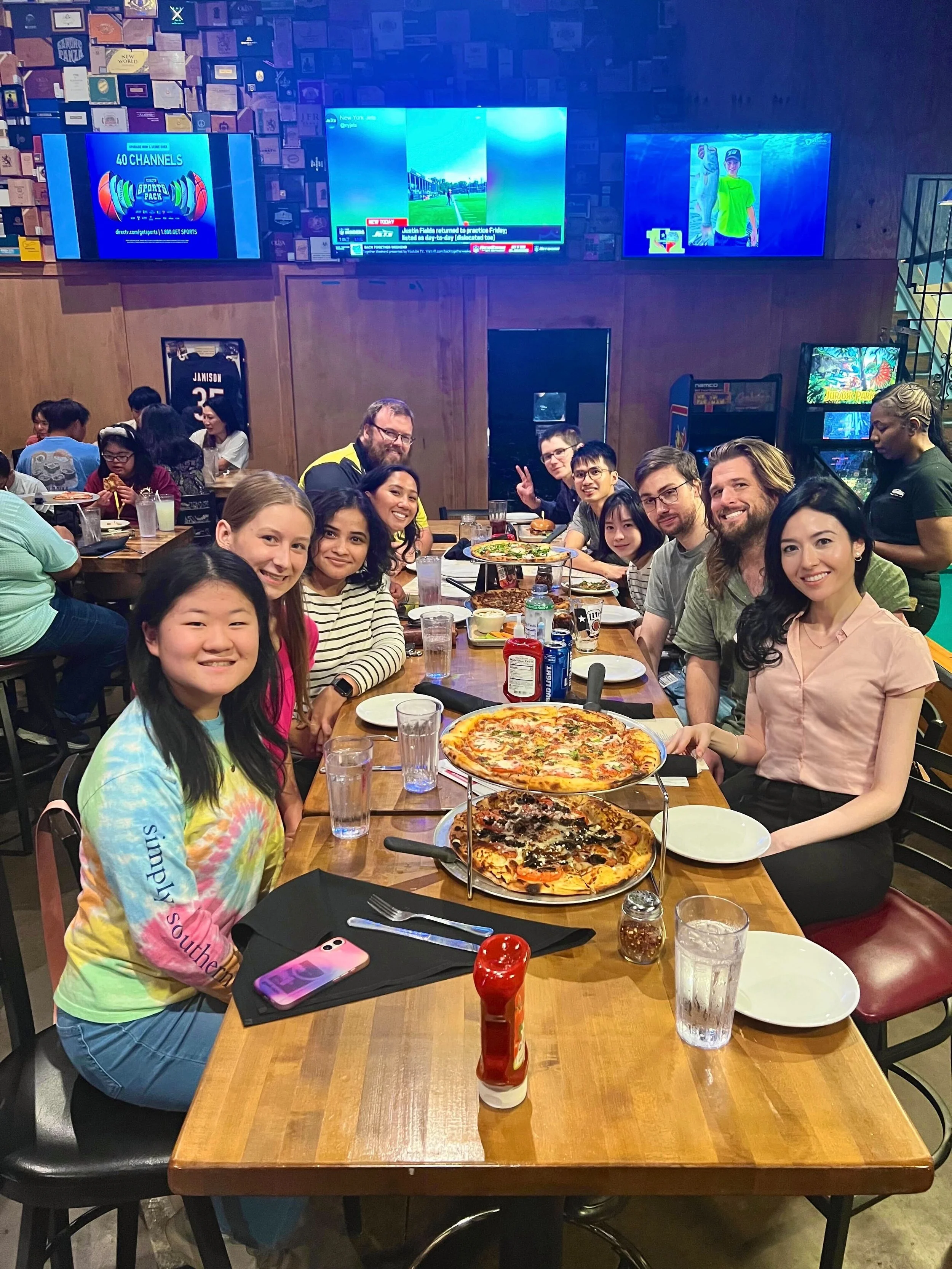 July 25, 2025: The Labs celebrated the hard work of our Youth Achievers by ending our week at UTSW’s local watering hole, Maple Landing. Beer and mocktails were consumed. Pizza was had. David and Sarah learned way too much about “kids these days” and their Socially Tiktak’ed Internets. Always great to host ambitious and curious local students in the lab! And learn a bit about how old we are!
